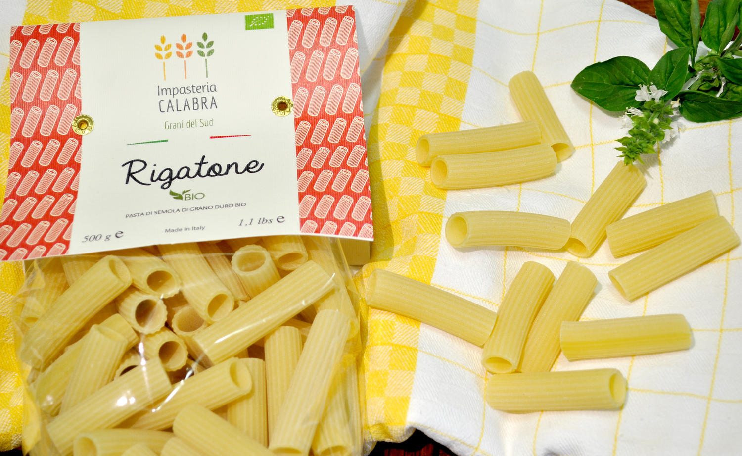 Il Rigatone di Impasteria Calabra è un formato di grande versatilità in cucina, è pensato e prodotto con cura sin dalla scelta della semola di grano duro biologica, ottenuta da Grani del Sud. La lavorazione del Rigatone, che abbiamo scelto "rigato", è frutto dell'esperienza del Pastificio Artigianale rigorosamente curata nell'impasto, nella trafilatura al bronzo di calibro unico con rigatura esterna già messo alla prova dei tempi e della qualità di risultato dell'essiccazione affinché la umidità sia contenuta nel 12,5%; della porosità ottimale per la palatabilità del prodotto e per l'amalgama con ogni condimento; dei tempi di cottura ideali per preparazioni della buona cucina di casa e delle cucine da Chef; della qualità e visiva.